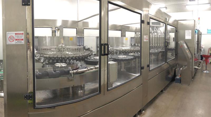 2017年,由廊坊百冠量身定制的20000B/H330ml)玻璃瓶灌裝生產線落戶涼露酒業,開啟了玻璃瓶酒類灌裝的新篇章。其中白酒定量灌裝一體機為四合一機型,具備沖瓶、瀝干、灌裝、封口功能,為百冠公司高端產品之一